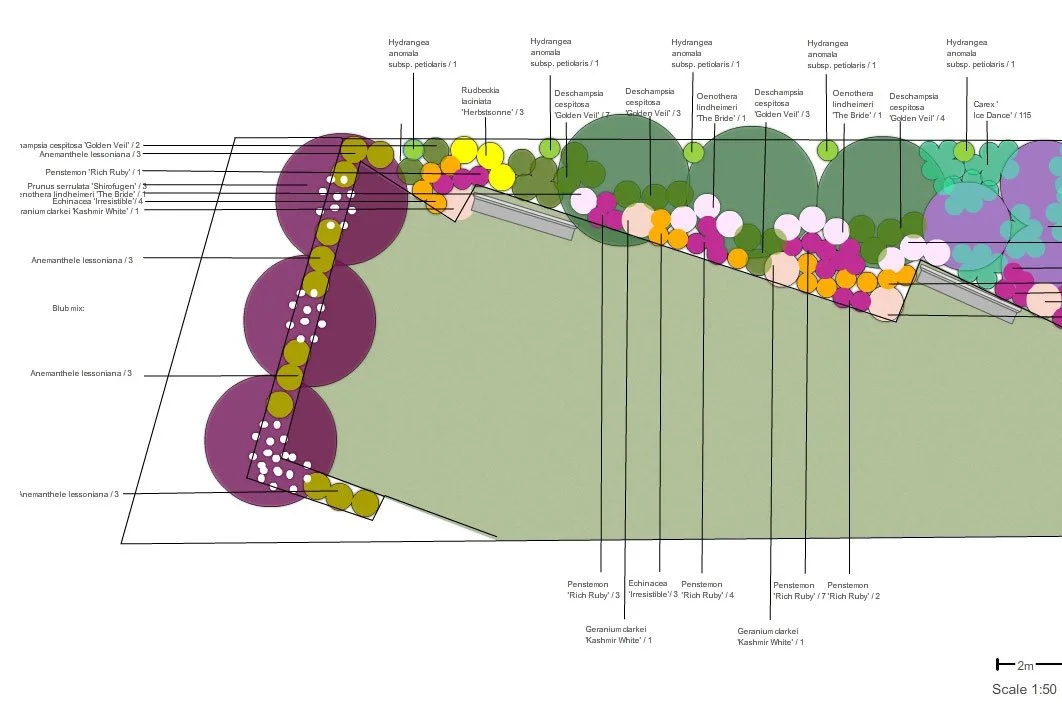 Site Measurement & Concept Design - After a detailed analysis of your needs, a topographical survey is undertaken, which produces the data on which your design will be produced: levels, site measurements and position of utilities are all taken into account. From this survey, 2d concept designs are produced showing the proposed new layout and overall structure of your garden.